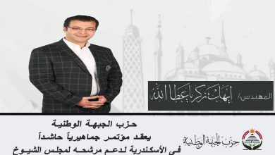 حزب الجبهة الوطنية يعقد مؤتمرًا جماهيريًا حاشدًا في الأسكندرية لدعم مرشحه لمجلس الشيوخ