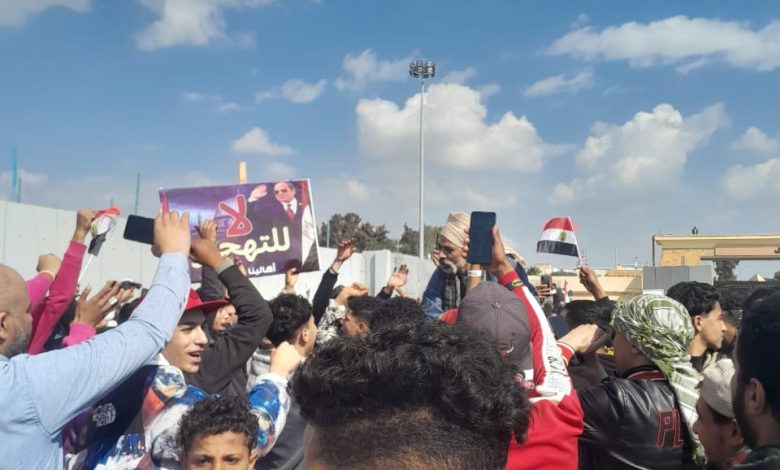 وفود شعبيه أمام معبر رفح رافضين دعوى تهجير الفلسطينين